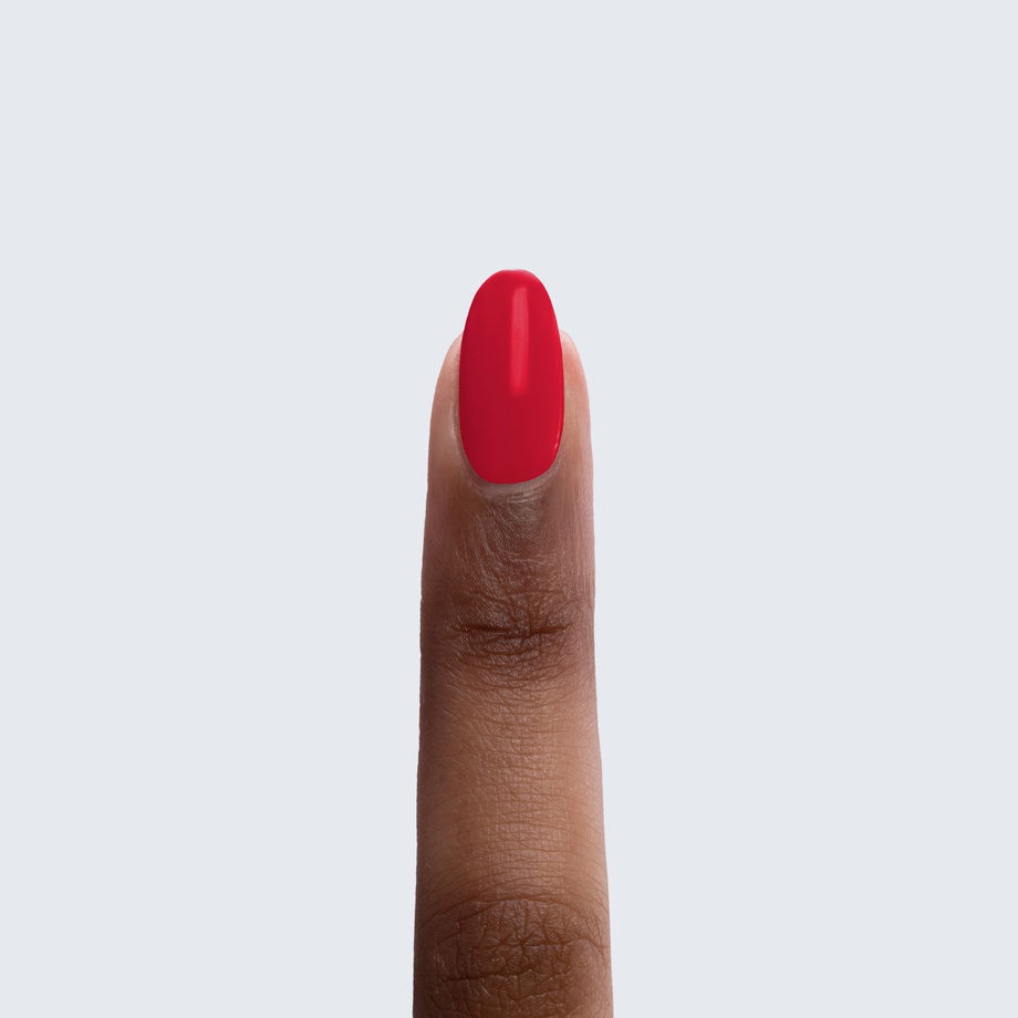 Here’s a poppy red polish with a certain je ne sais quoi.